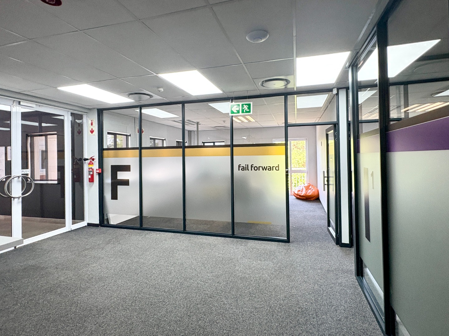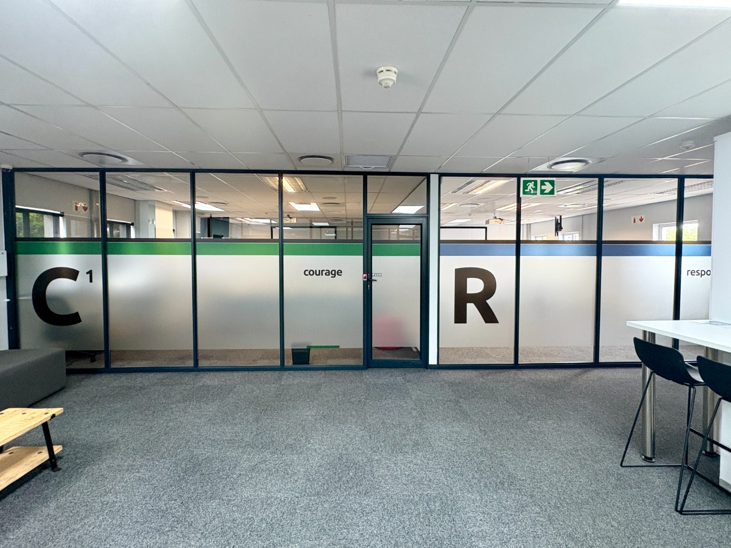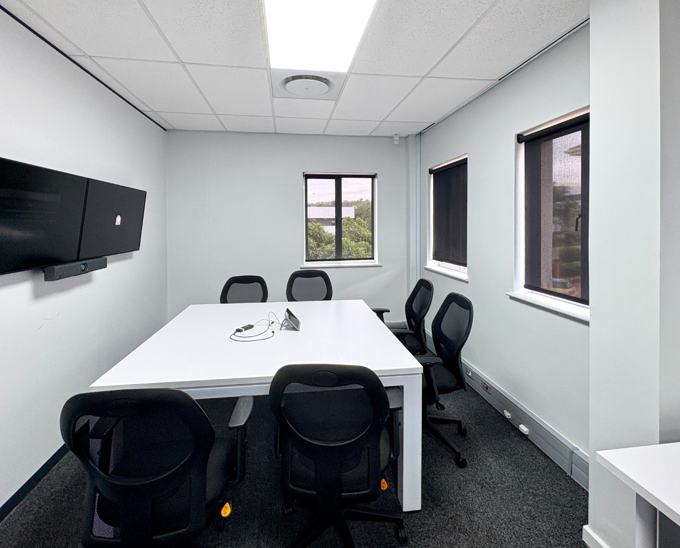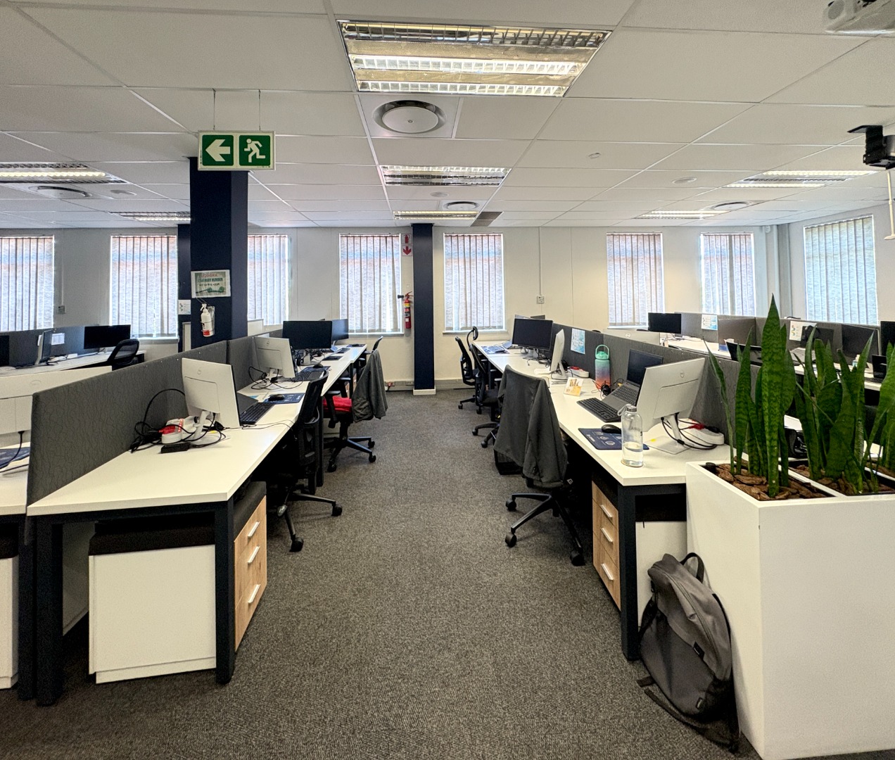 Comprising approximately 950 m² across three fully fitted units — one on the ground floor and two on the first — the building offers a versatile layout designed for functionality and comfort. Each office features a blend of open-plan work areas, executive offices, boardrooms, and kitchen facilities, with shared restrooms conveniently located on each level. The design promotes both collaboration and privacy, ideal for dynamic, growing businesses.