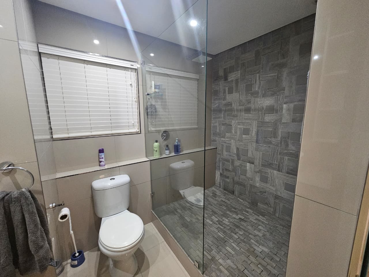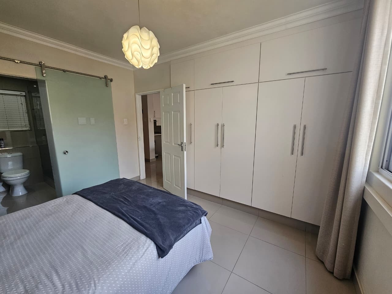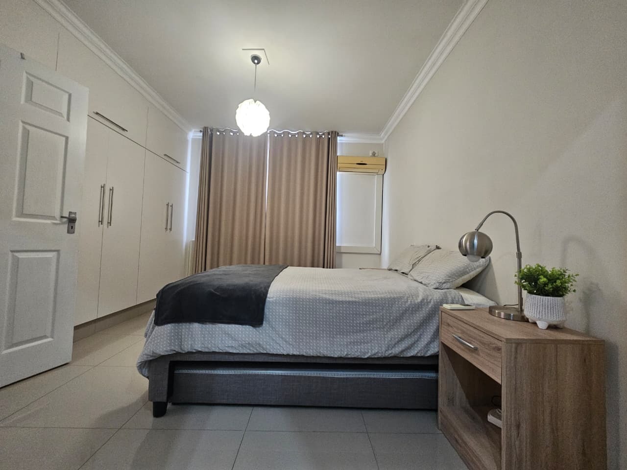 The generously sized bathroom has built in cupboards, aircon and an en-suite bathroom with an extra large shower. Additional features include pre-paid water and electricity, 24hr security, walking distance to Gateway.
