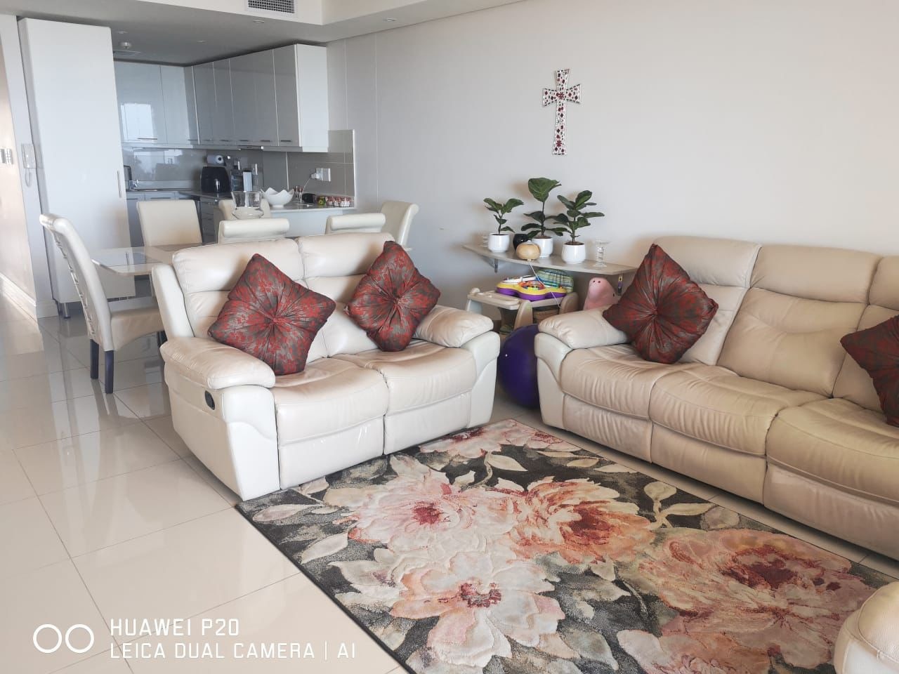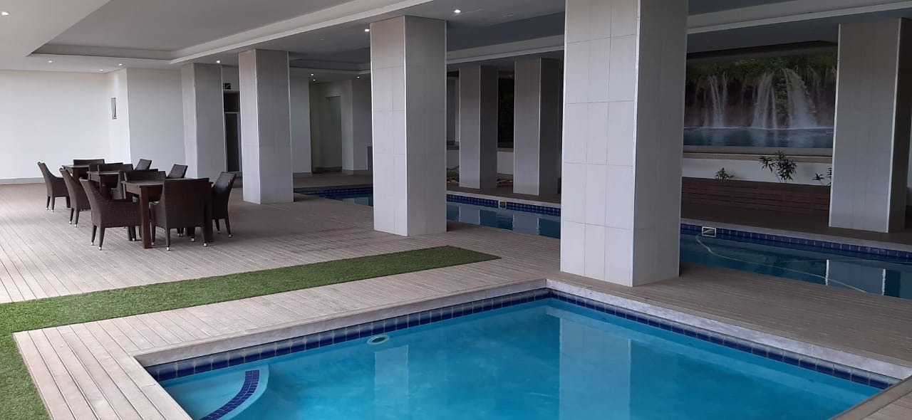 This large upmarket 3 bed, 2 bath bedroom apartment is situated in a secure development on Umhlanga Ridge. Tiled floors feature throughout the apartment, onto an open plan living area with integrated kitchen, and a patio. All of the bedrooms have built in cupboards, as well as en-suite bathrooms fitted with glass shower suites. The large open plan living area certainly does accommodate a dining-suite and lounge-suite with accessories.. . The modern kitchen is integrated into the living area and features built in cupboards, ceasar-stone tops, which can also serve as a breakfast bar. Modern fittings in the bathrooms definitely enhance the unit. This gorgeous apartment comes with a store-room and domestic quaters'. The architecture and design of this block fulfills all one’s requirements. Style and comfort…check. Two secure parking bays are available for the use of the residents of the apartment, who may also make use of the estate's communal pool. Residents also have the convenience of driving up to the apartment and parking at our front-door.